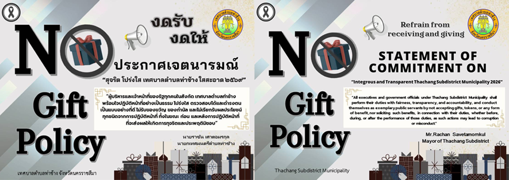 ประกาศเจตนารมณ์ “สุจริต โปร่งใส เทศบาลตำบลท่าช้าง จังหวัดนครราชสีมาใส...